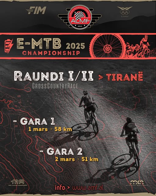 E-MTB CrossCountry Race është një garë e menduar vetëm për biçikleta elektrike Mountain Bike. Gara është e tipit CrossCountry. Terreni Off-Road. Gara do të jetë me dy etapa në dy ditë. Secila Etapë merr pikë për Kampionatin. Eventi është e tipit "Open" dhe e hapur për pjesëmarrësit mbi 18 vjeç. Numri maksimal i pjesëmarrësve: 40 çiklistë. Gara organizohet nga Federata Shqiptare e Motoçiklizmit dhe bazuar në kategorinë e FIM Europe "E-BIKE". AGENDA 31 janar Hapja e regjistrimeve online. 27 shkurt Mbyllja e regjistrimeve. 1 mars Ora 08:00 - 09:30 Check in / […]
